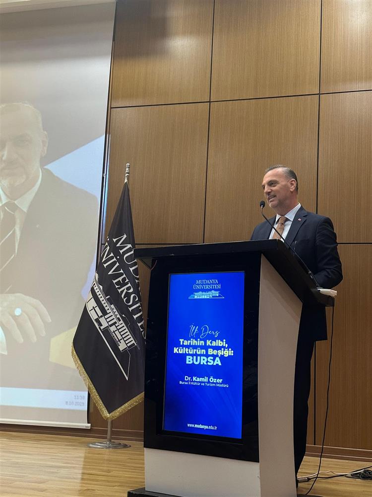 İl Müdürümüz Dr. Kamil Özer, Mudanya Üniversitesi’nde yeni dönemin ilk ders gününde öğrencilere “Tarihin Kalbi Kültürün Beşiği: Bursa” konulu bir konferans verdi. Dinleyici olarak katılan tüm öğrencilere yeni öğretim yılında başarılar diliyoruz.